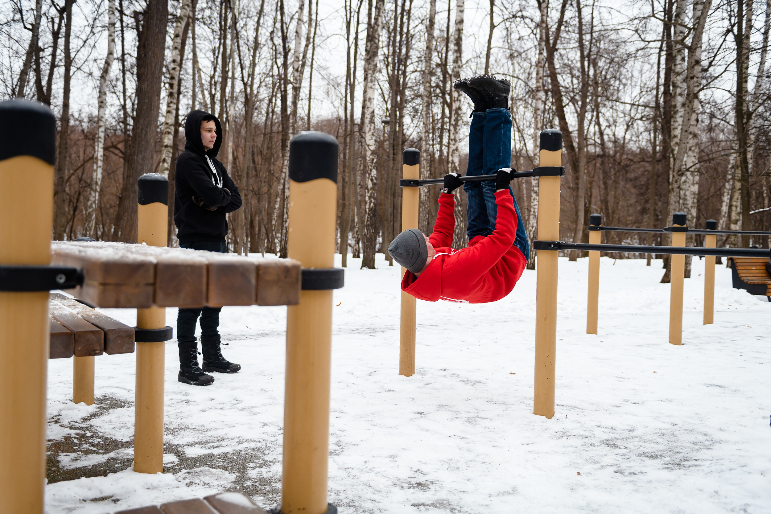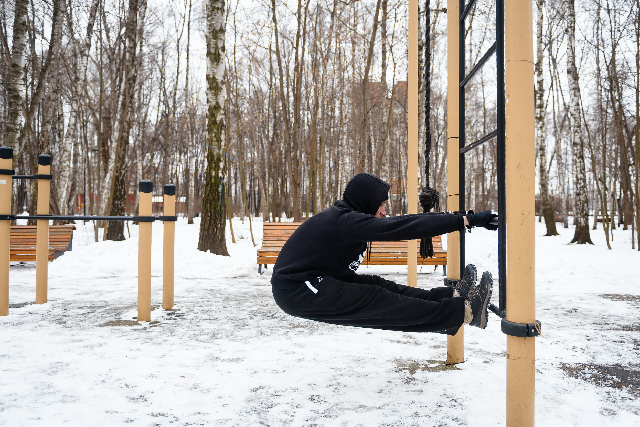 Растяжка Ног на Шведской Стенке Зимой
