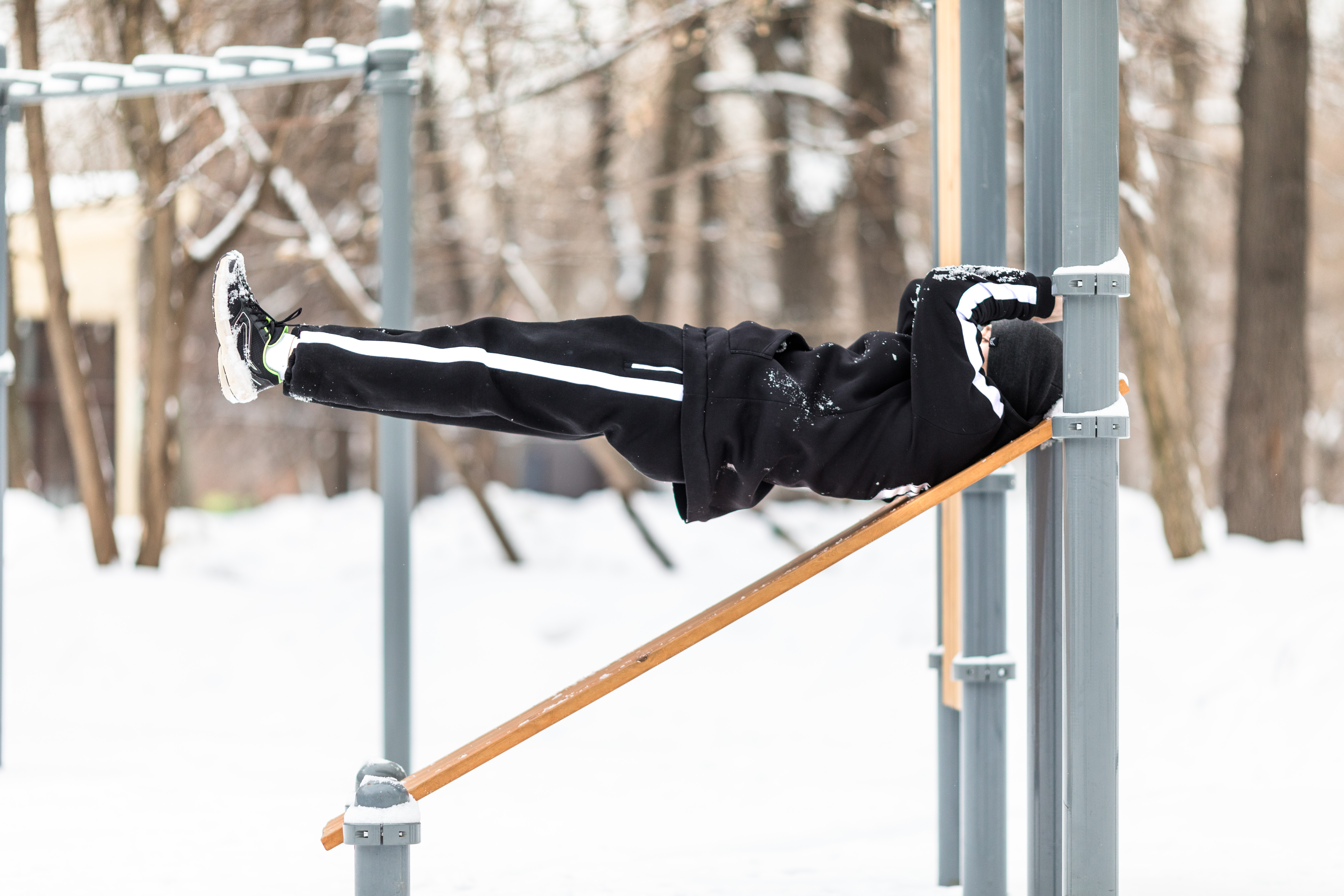 Воркаутеры на тренировке зимой