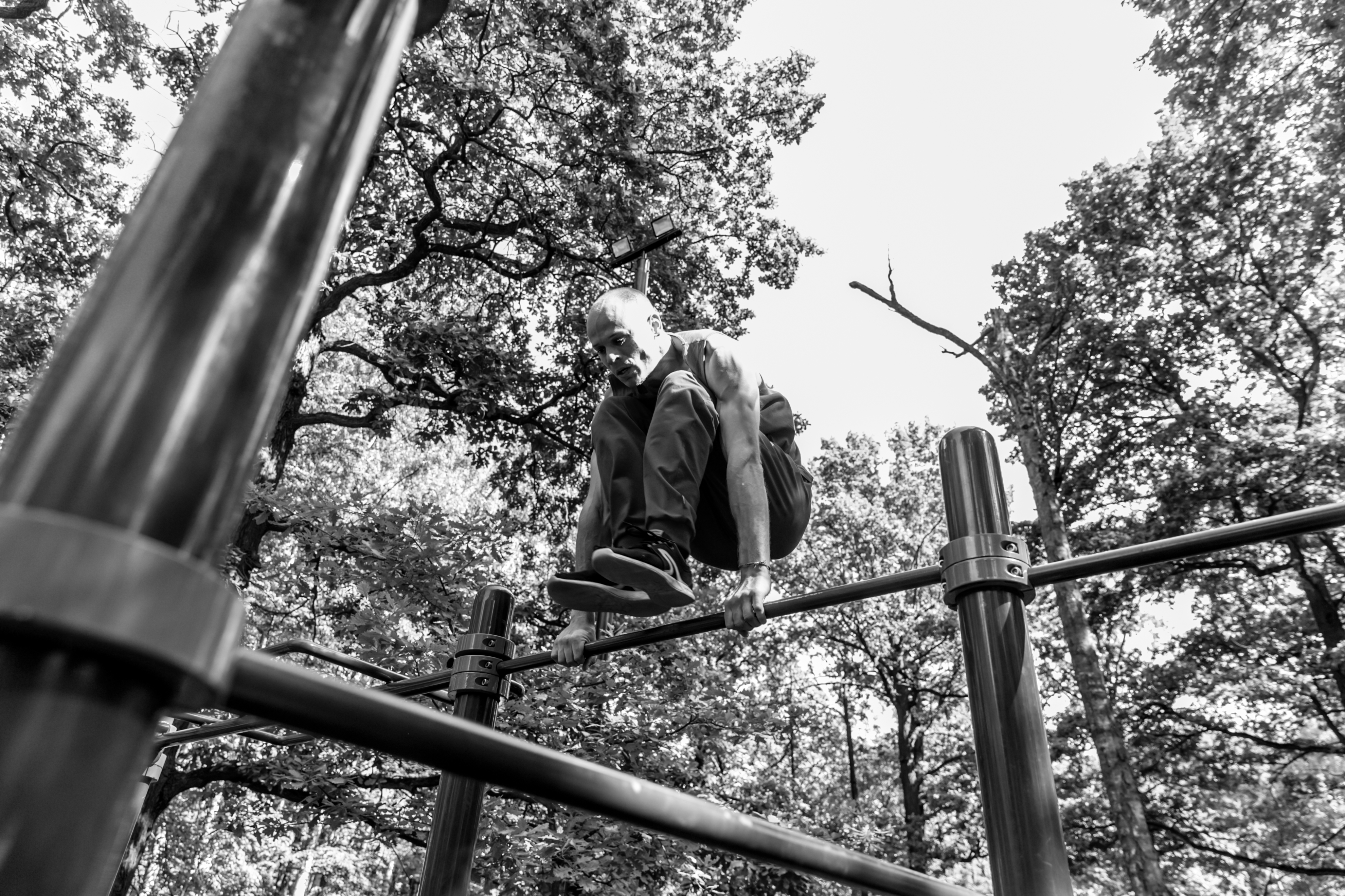 Баланс на одной ноге на турнике